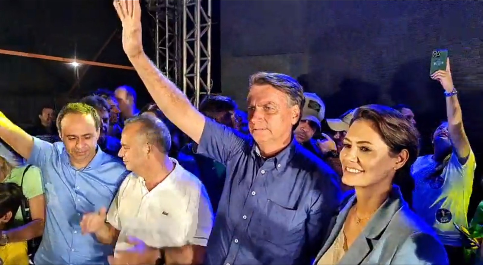 Bolsonaro e Michelle durante o evento em Natal — Foto: Reprodução