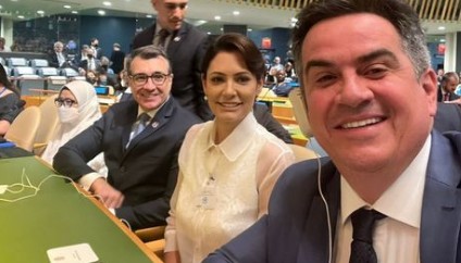 Michelle Bolsonaro e Ciro Nogueira na Assembleia da ONU — Foto: Reprodução