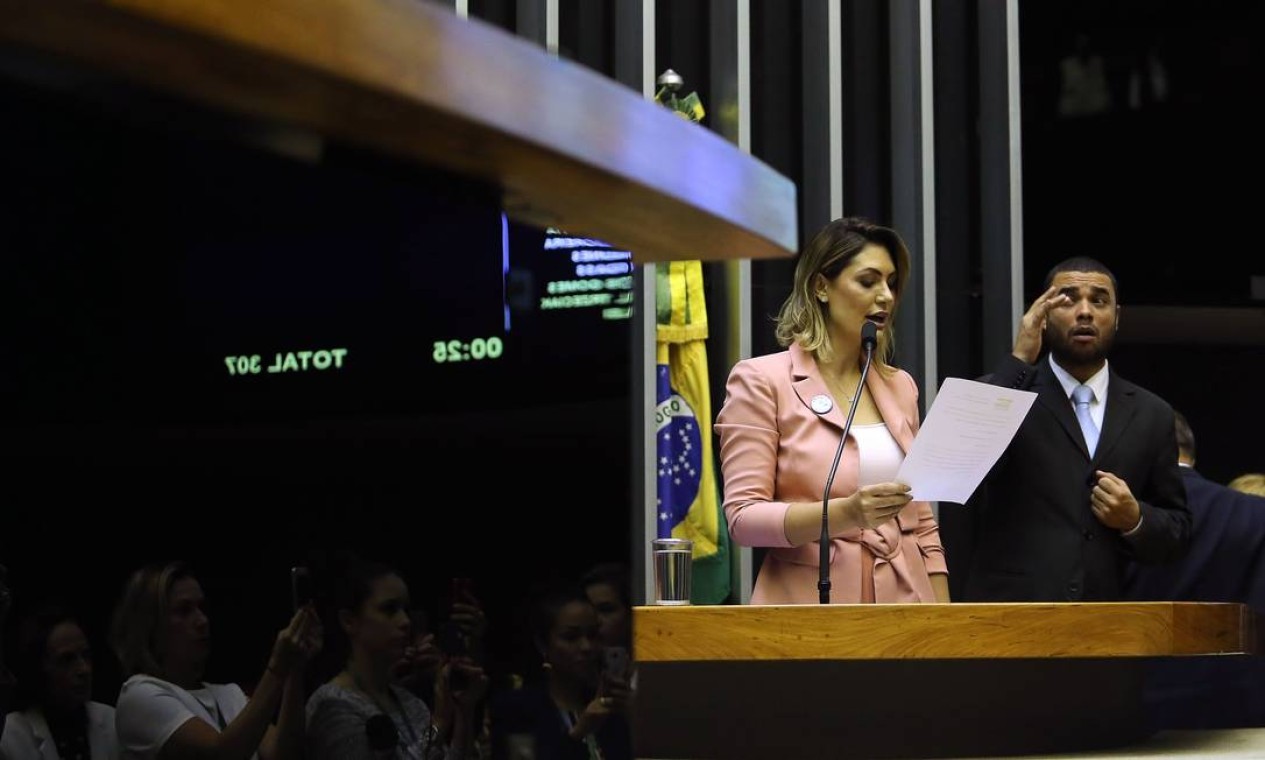 A primeira-dama participa da sessão solene em homenagem ao Dia Mundial das Doenças Raras,no Congresso — Foto: Jorge William/Agência O Globo/27-02-2019