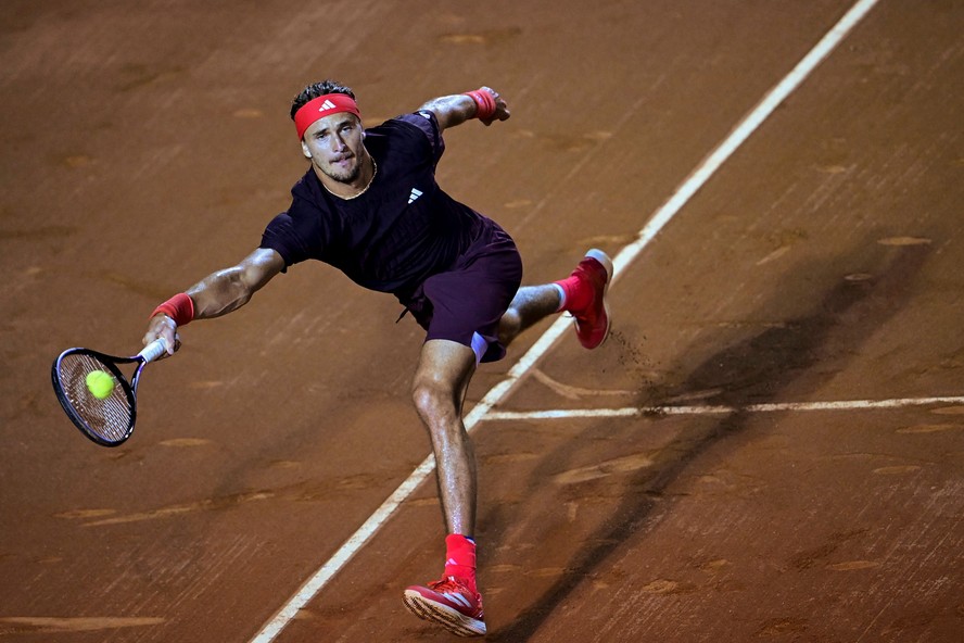Alexander Zverev devolve a bola na estreia do Rio Open — Foto: Mauro PIMENTEL / AFP
