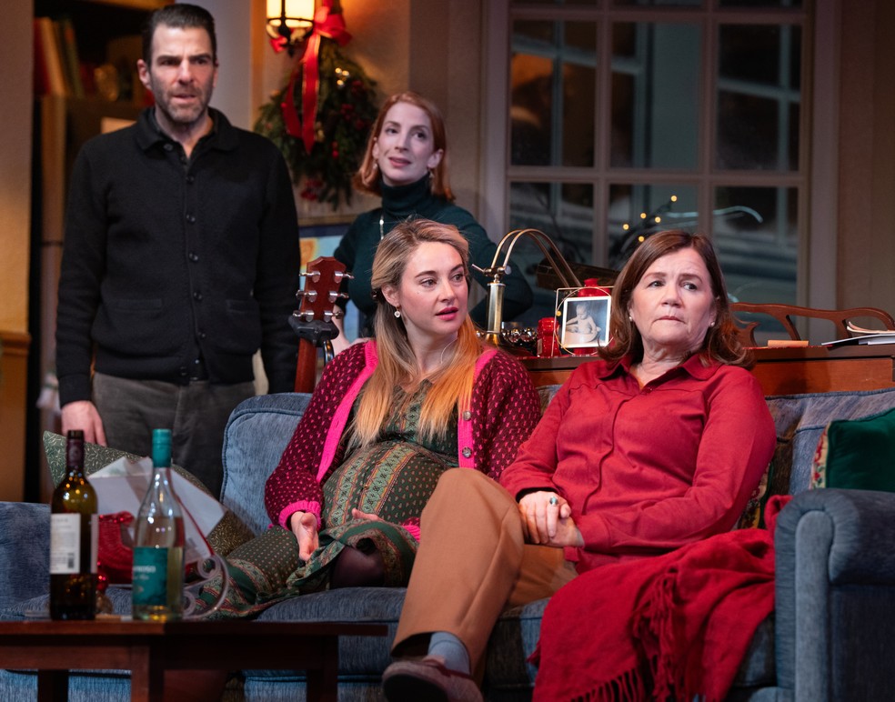 Elenco da peça 'Cult of Love',em cartaz na Broadway: a partir da esquerda,achary Quinto,Molly Bernard,Shailene Woodley e Mare Winningham — Foto: Sara Krulwich/The New York Times