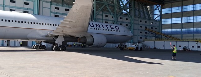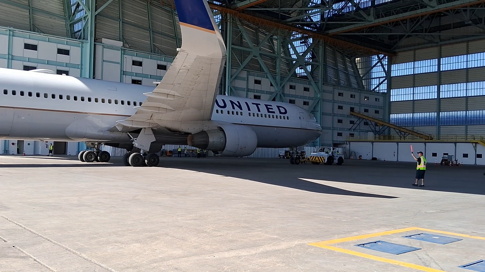 Retomada começou com a instalação de uma oficina da companhia americana United Airlines no hangar que foi da antiga Varig,no Aeroporto Internacional do Galeão. Inaugurada em julho de 2023,unidade recebeu investimentos de R$ 100 milhões — Foto: Vinicius Neder/Agência O Globo