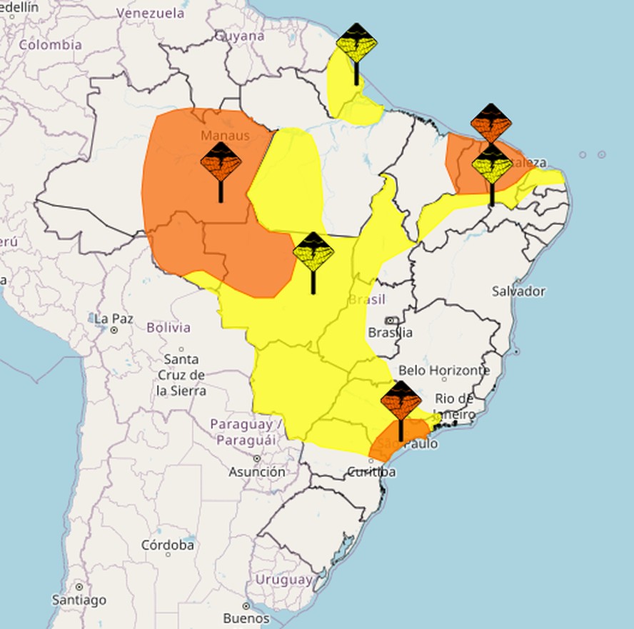 O mau tempo ainda se fará presente na vida de quem mora em São Paulo. No estado,um alerta de tempestade foi emitido na quarta-feira. Na quinta,chuvas intensas estão previstas na escala de "Perigo",de acordo com o Instituto Nacional de Meteorologia (Inmet). Além de lá,Manaus,Mato Grosso,Rondônia,Ceará,Piauí e Maranhão também serão impactados pela mesma previsão.