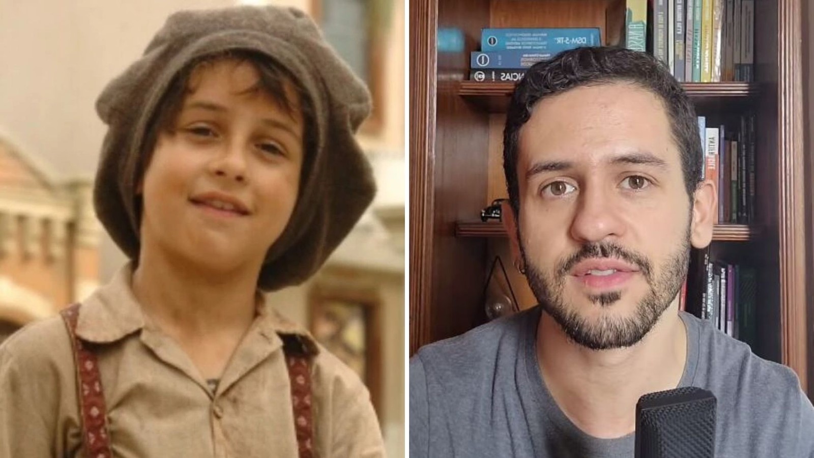 Davi Lucas começou a carreira ainda criança e fez novelas como "Alma gêmea","Caras & bocas","Fina estampa","Malhação" e "Êta mundo bom!". Ele decidiu cursar Psicologia e trabalha com mentoria — Foto: Reprodução/Globo e Reprodução/Instagram