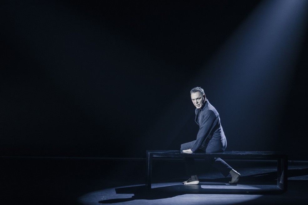 Cena da peça 'O estrangeiro reloaded',com Guilherme Leme — Foto: Victor Pollak/Divulgação
