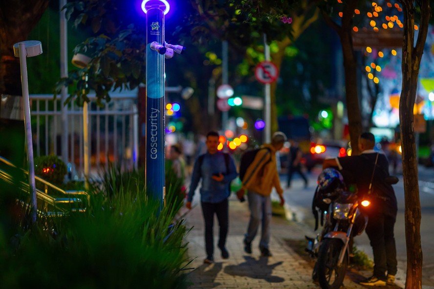 Diferentemente do monitoramento tradicional,que apenas grava o que se passa na entrada dos prédios,as câmeras dos novos totens identificam atividades suspeitas,rostos e placas de veículos,graças à IA. Os equipamentos são integradas a centrais de monitoramento que podem repassar essas informações à polícia.