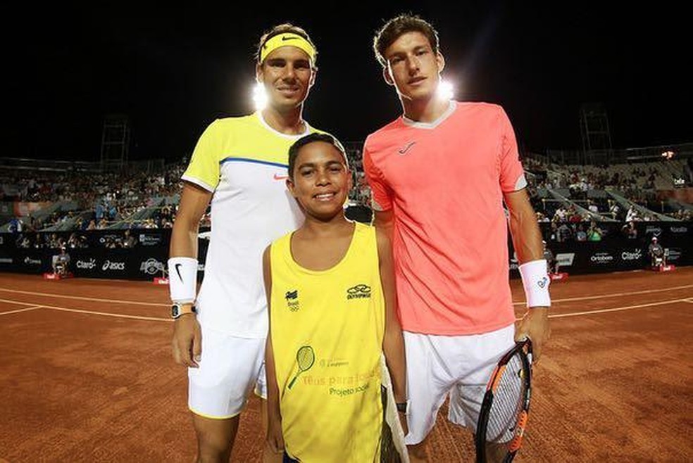 Quem contou com essa "sorte" foi Fernando Alves,22 anos,que teve um dos primeiros contatos com a bola amarela justamente no saibro carioca. Com apenas três meses como aluno no projeto Futuro Bom,ele foi pego de surpresa ao receber o convite para fazer o coin toss (sorteio de cara ou coroa) na partida do espanhol multicampeão Rafael Nadal contra o compatriota Pablo Carreño Busta,em 2016.