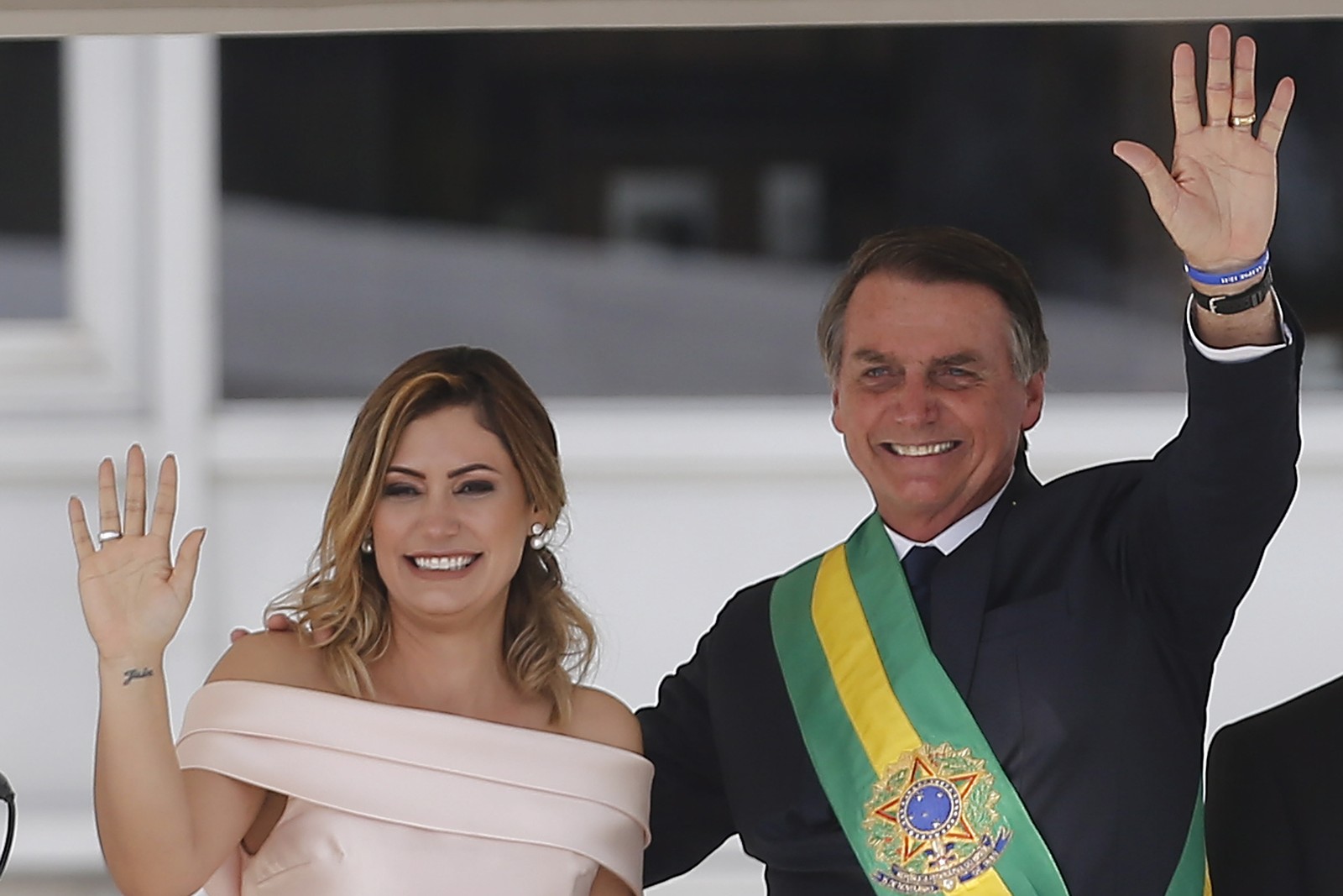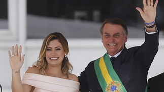 Cerimônia de posse do ex-presidente Jair Bolsonaro. Na foto,Jair Bolsonaro acompanhado da ex-primeira dama,Michele Bolsonaro. — Foto: Jorge William / Agência O Globo