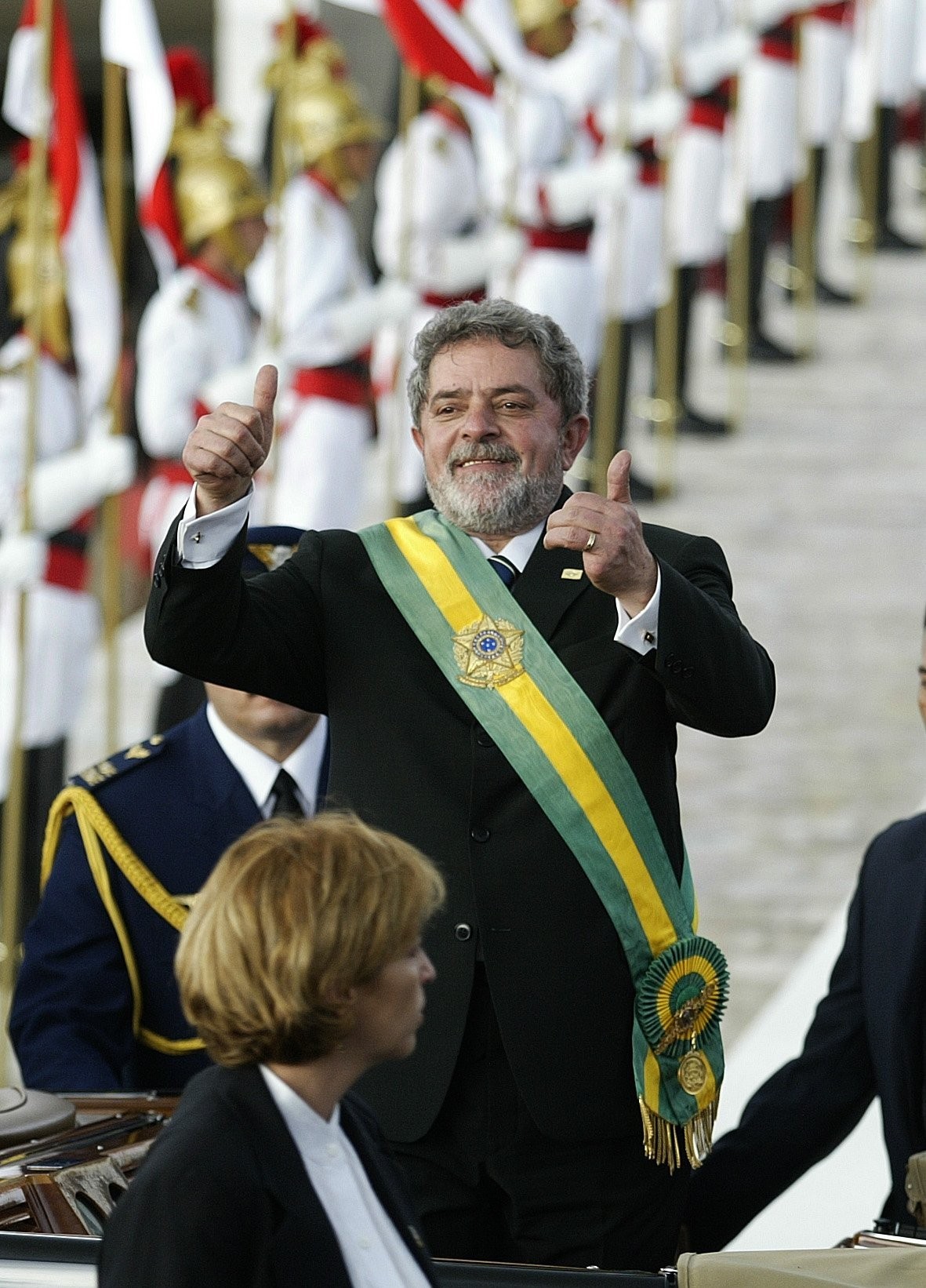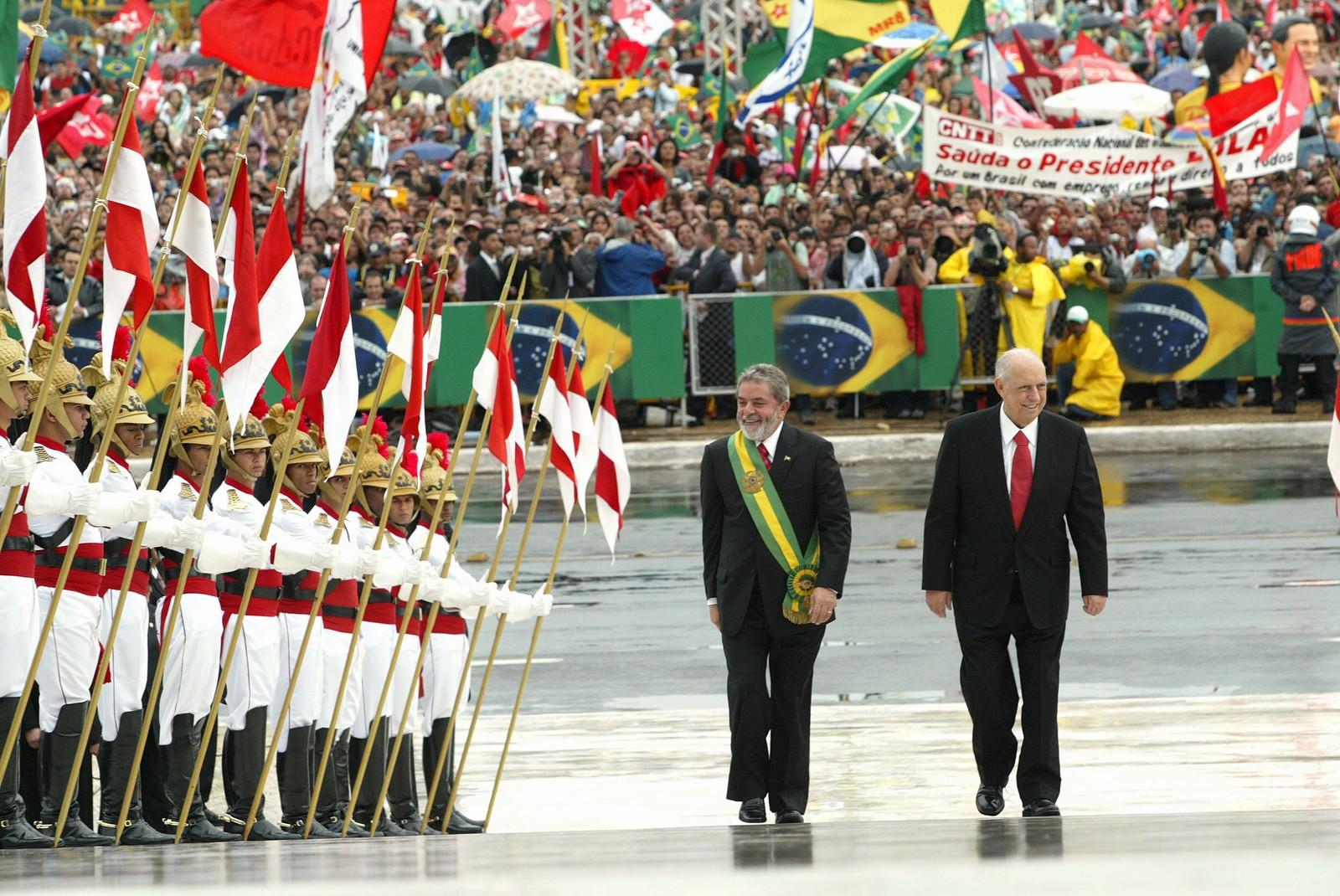 Presidente Lula na rampa do Palácio do Planalto na posse de seu primeiro mandato presidencial,de 2003 a 2006. — Foto: Ivo Gonzalez / FOTODIGITAL