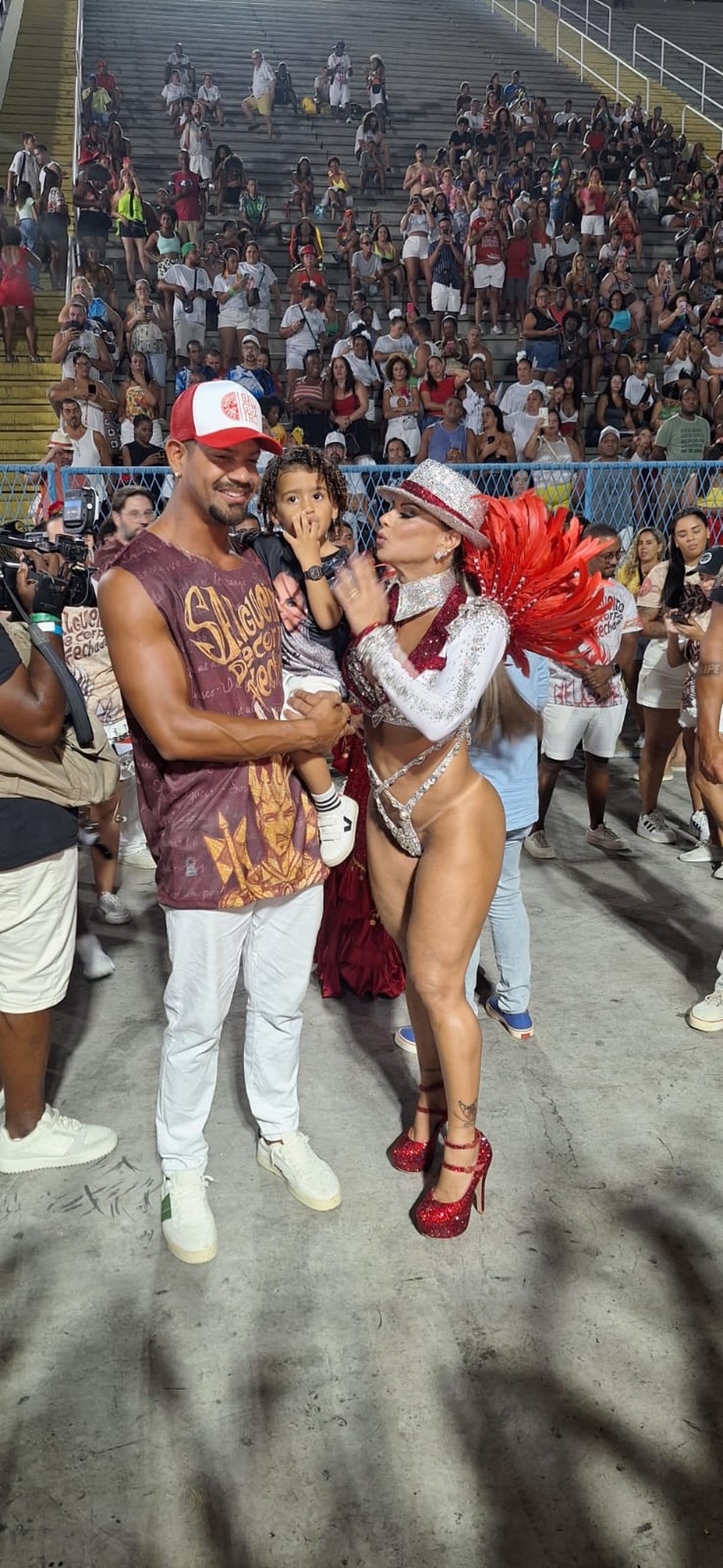 Viviane Araújo com o filho na Sapucaí — Foto: Jéssica Marques