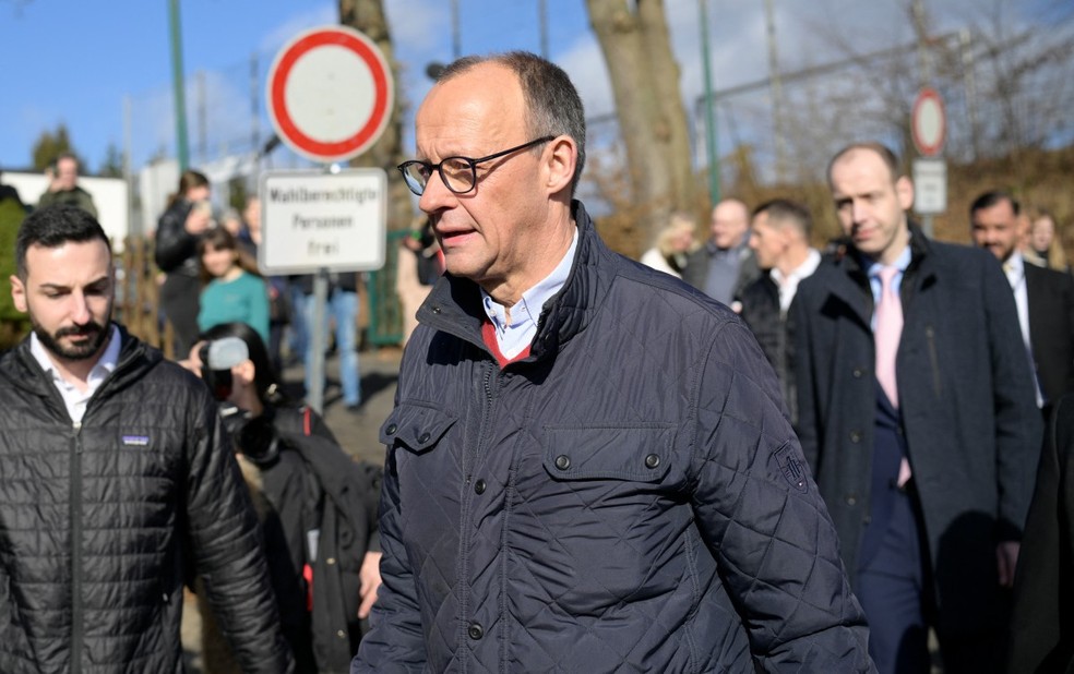 O bloco CDU/CSU de Merz deve vencer com 28,9% dos votos,à frente do partido de extrema direita AfD e dos sociais-democratas do atual chanceler,Olaf Scholz.