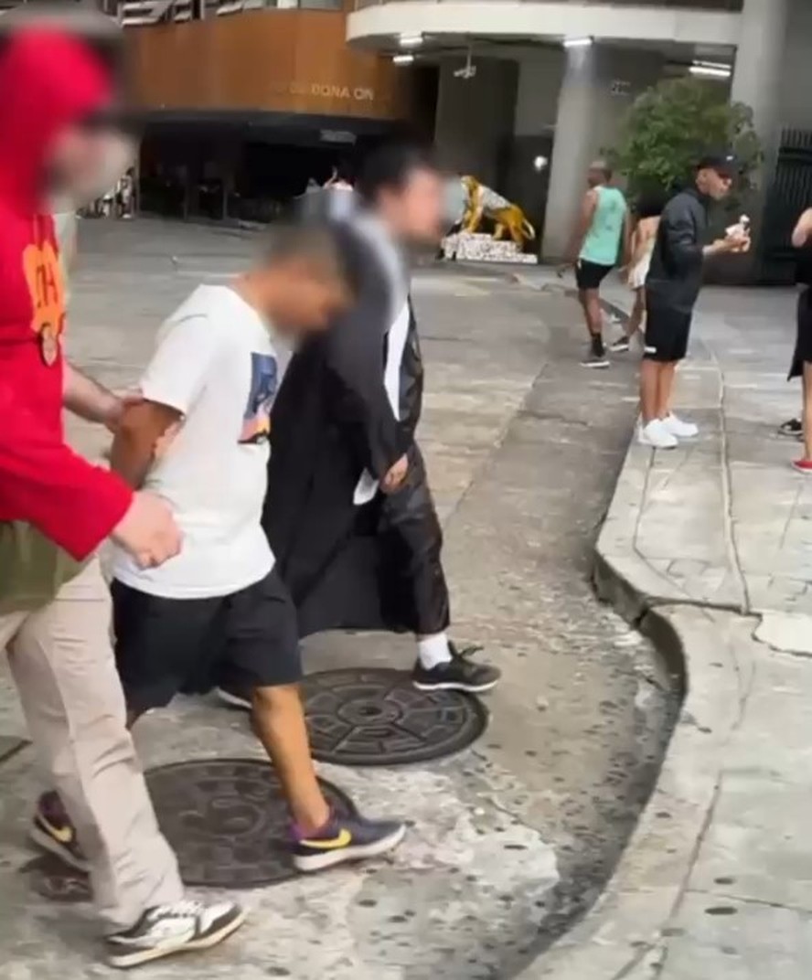 Policiais fantasiados de Chapolin e de padre prendem ladrão durante bloco em SP — Foto: Reprodução de vídeo/Divulgação