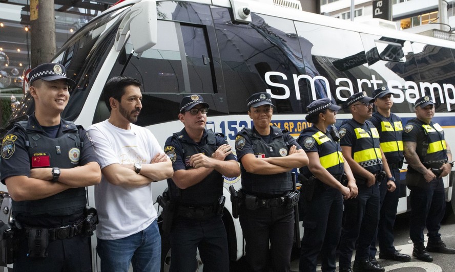 O prefeito de São Paulo,Ricardo Nunes,com a Guarda Civil Metropolitana — Foto: Edilson Dantas / Agência O Globo/ 31/12/2024