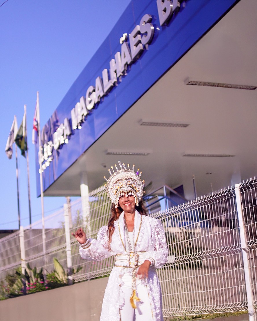 Carla em frente a UPA de Magalhães Bastos: três décadas de paixão pelo carnaval e a profissão — Foto: Divulgação