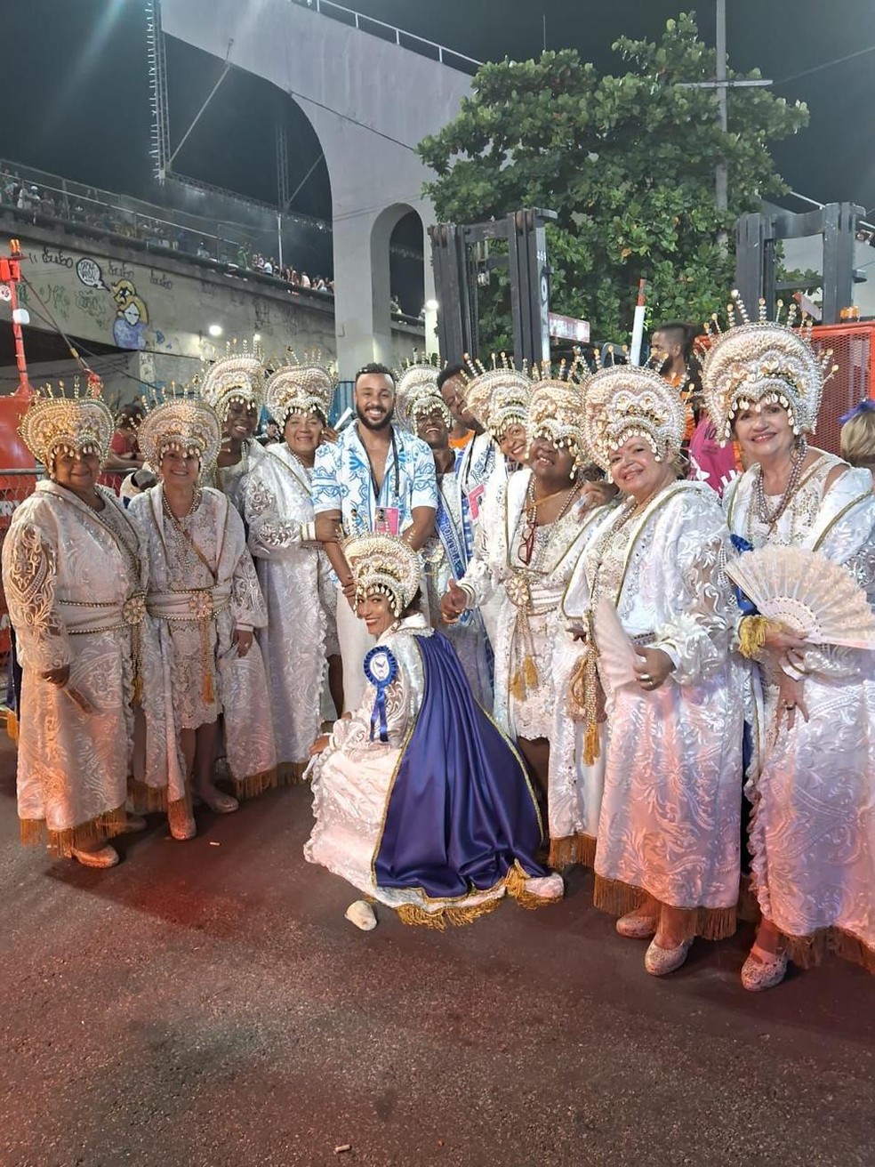 Carla e integrantes da Portela na concentração da Marquês de Sapucaí — Foto: Acervo pessoal