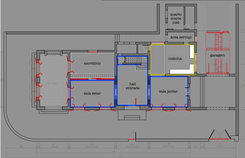 “Parecia reality show de reforma (acima,a planta baixa do primeiro andar da casa já com a disposição para o filme). Isolamos a peça da frente,que nem é usada no filme. Trocamos as janelas,separamos metade da sala para ser o escritório do Rubens,no segundo andar derrubamos paredes para fazer o quarto dos pais. Tinha uma parte aberta na parte de cima que nós fechamos para ficar mais parecido com a casa original. Por fora,passei uma tinta para envelhecer a casa inteira. Depois,‘desreformamos’. Quando entregamos a casa,estava tudo igual. Inclusive teve umas palmeiras que saíram e voltaram.”