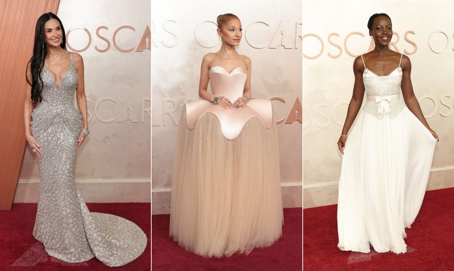 Uma moda mais clássica e conservadora predominou no tapete vermelho do Oscar,que acontece neste domingo,às 21h,em Los Angeles. O que mais se viu foram looks em tons metalizados,em diversos tons da pele e em rosa,como nas escolhas de Demi Moore,Ariana Grande,Selena Gomez e Lupita Nyong'o.