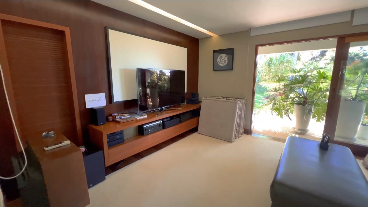 Sala de TV e cinema da nova casa de Viih Tube e Eliezer. Ela multiplicou sua fortuna após o programa,após anos como influencer. Já ele conquistou todo o dinheiro a partir do programa — Foto: Reprodução