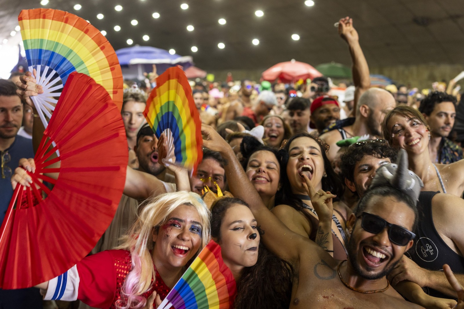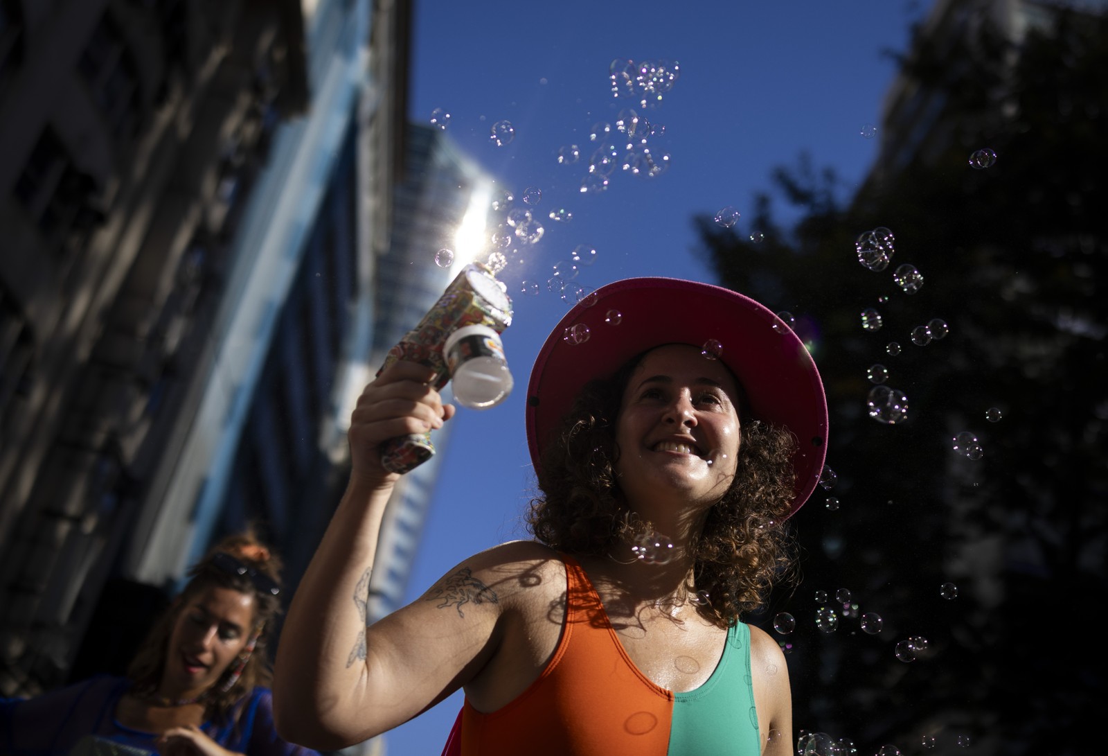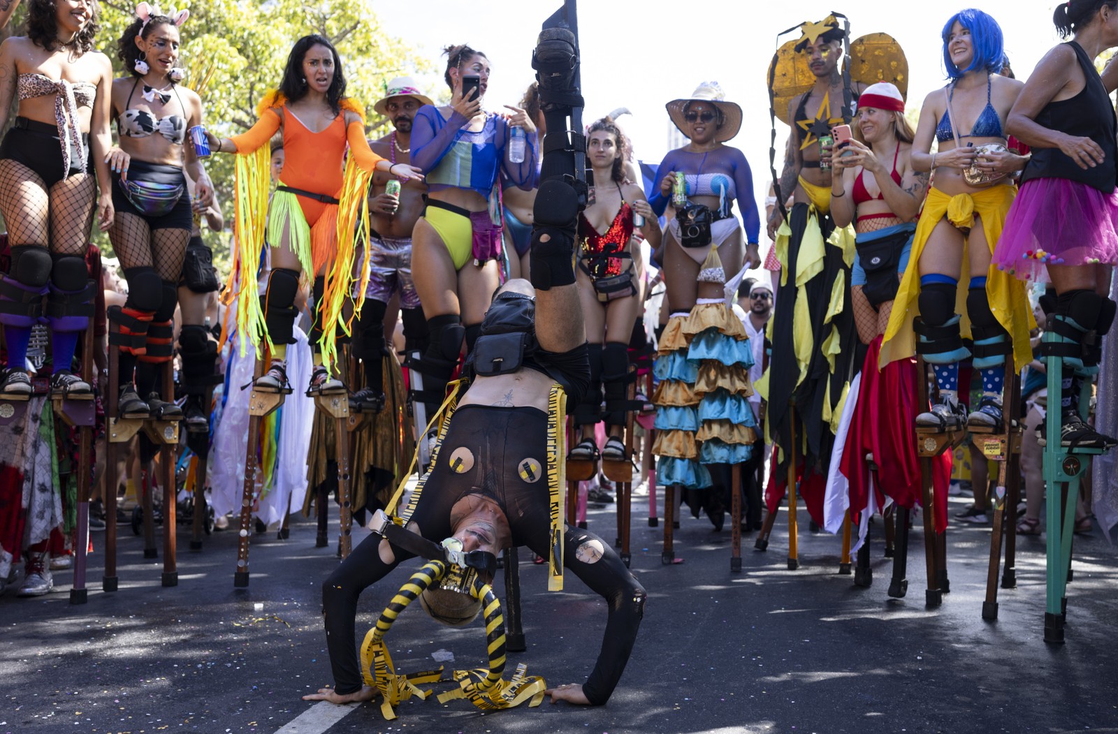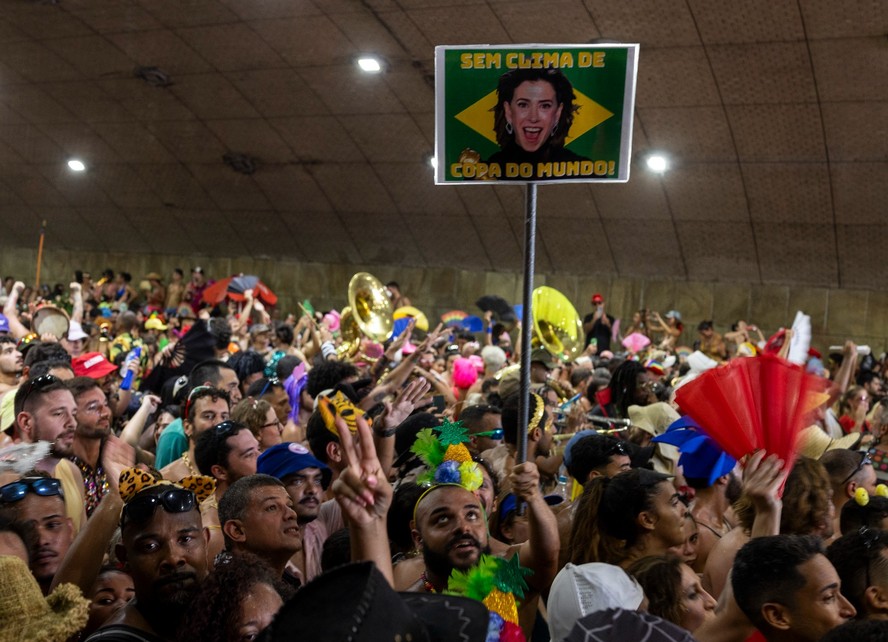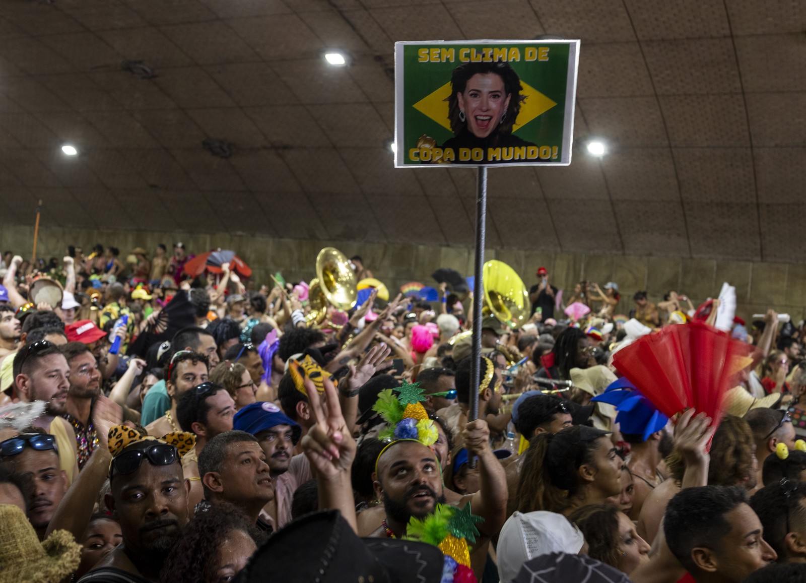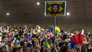 Foliões tomam conta de túnel da Zona Sul do Rio aos gritos de Fernanda Torres