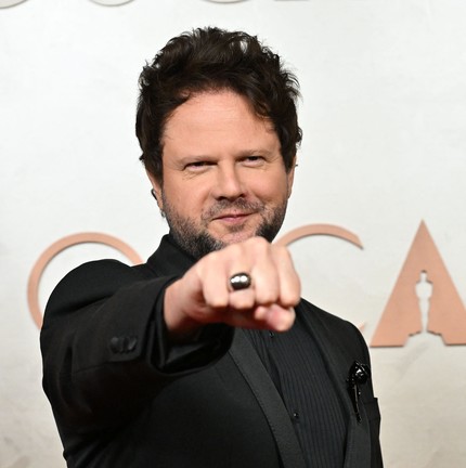 Rodrigo Teixeira,produtor de 'Ainda estou aqui',com a cineasta Carolina Jabor no tapete vermelho do Oscar 2025 — Foto: Robyn Beck / AFP