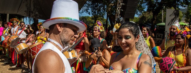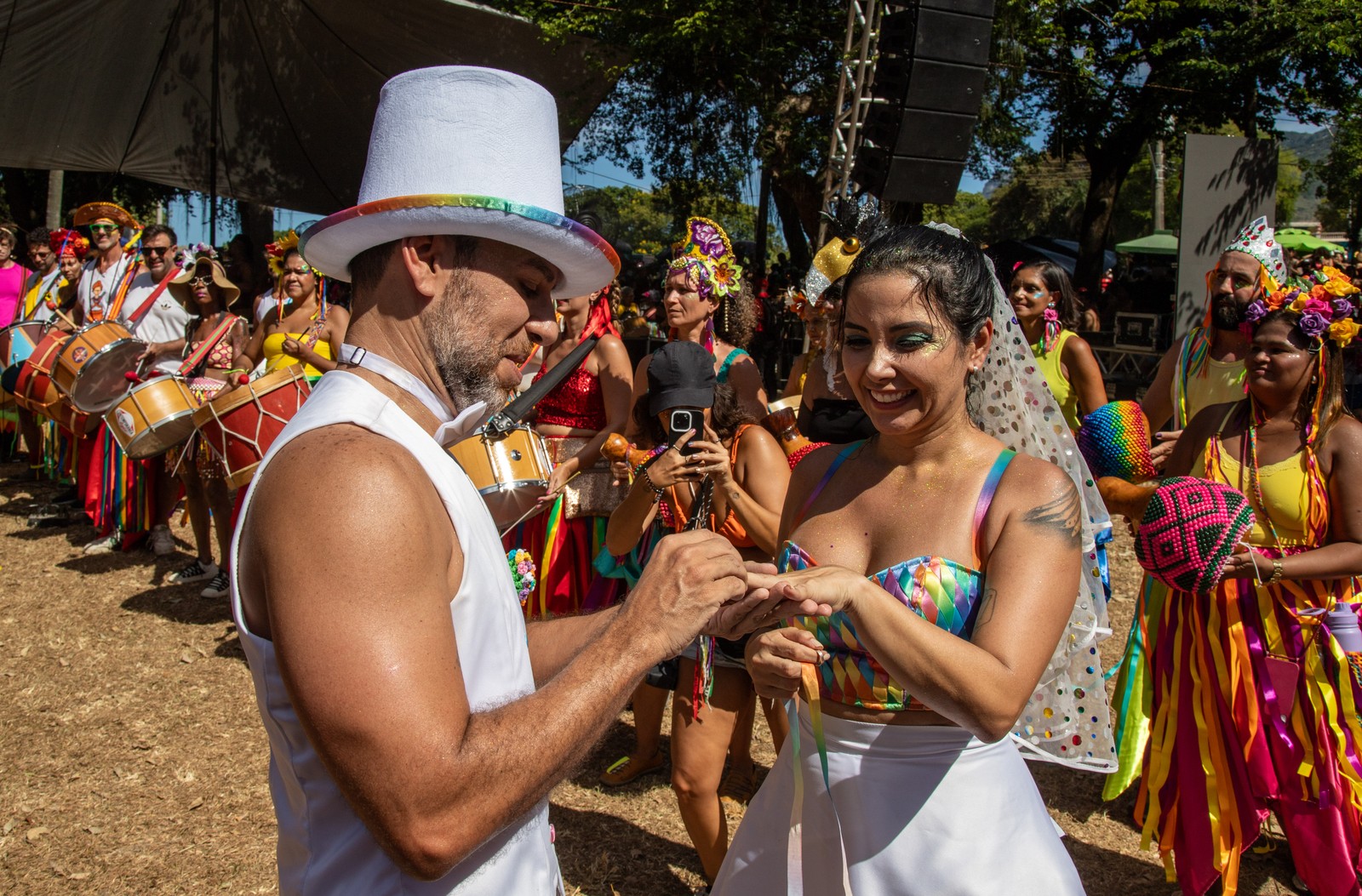 Pedido de casamento durante o tradicional bloco de carnaval Terreirada,na Quinta da Boa Vista — Foto: Fernando Maia / Riotur