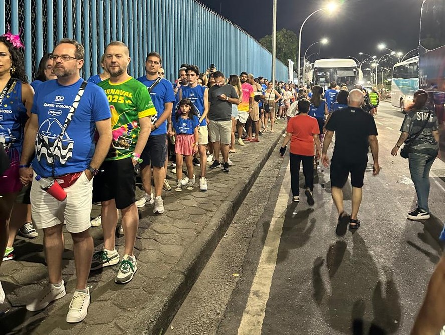 A fila estava longa na entrada para a Marquês de Sapucaí — Foto: Reprodução
