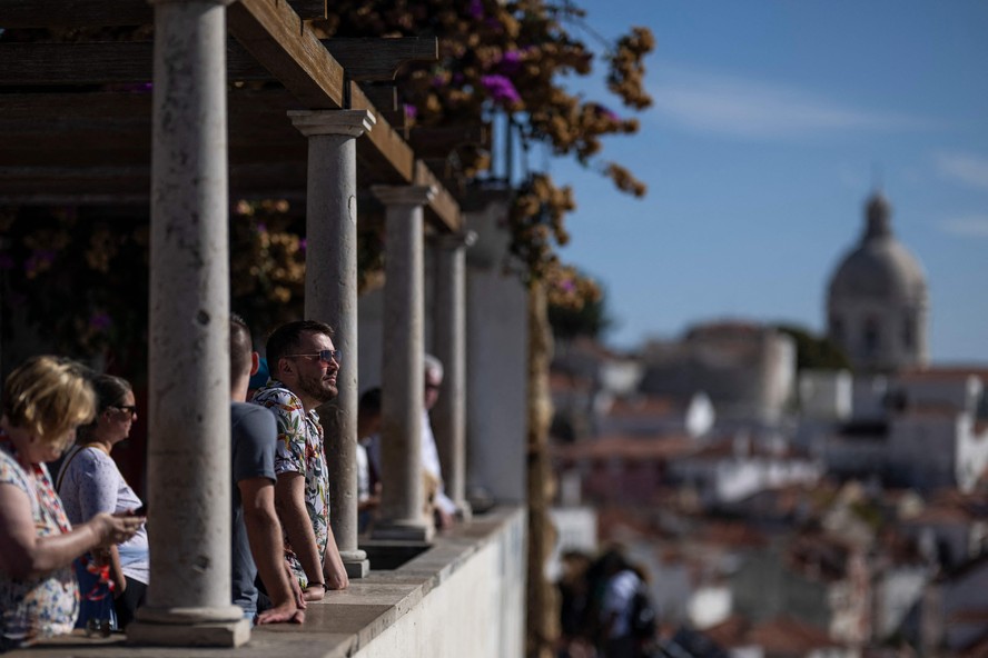 Visitantes e turistas no miradouro Santa Luzia,em Lisboa — Foto: Patrícia de Melo Moreira/AFP