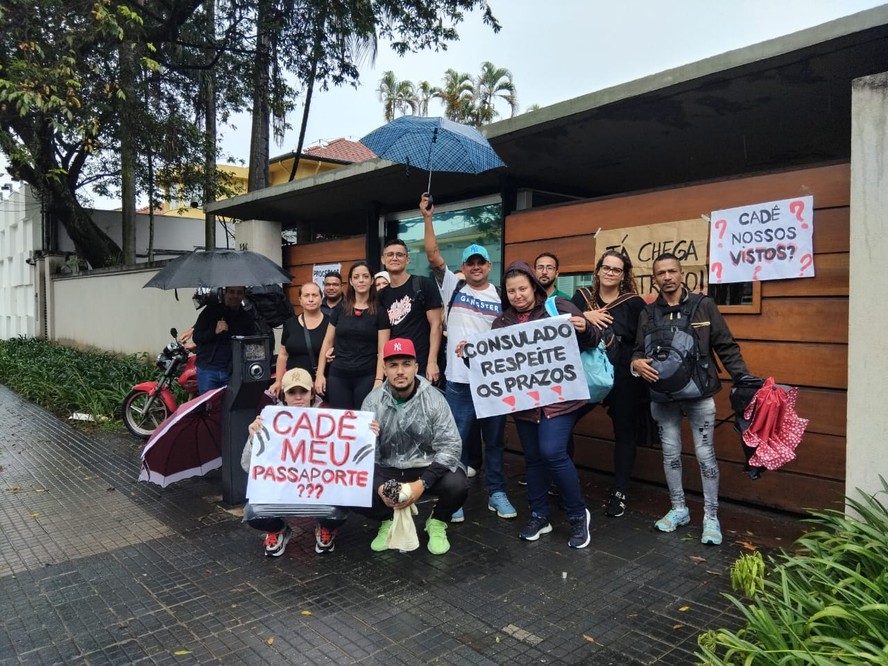 Brasileiros protestam em frente ao consulado português em São Paulo em fevereiro — Foto: Divulgação para Portugal Giro