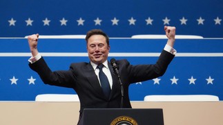 Elon Musk discursa durante evento a apoiadores de Trump no dia da posse do presidente americano — Foto: Christopher Furlong/Getty Images/AFP