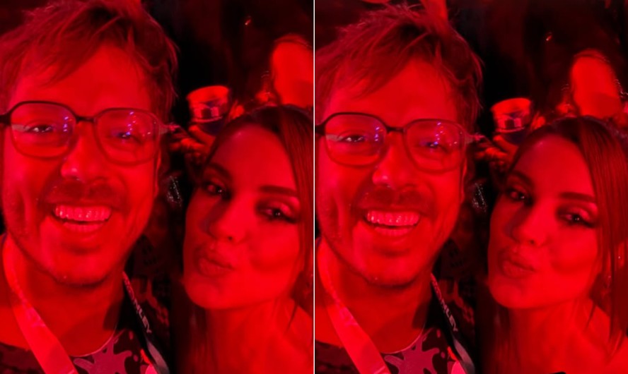 Fábio Porchat e Gkay posam juntos em camarote na Sapucaí,no Desfile das Campeãs do carnaval carioca — Foto: Reprodução/Instagram