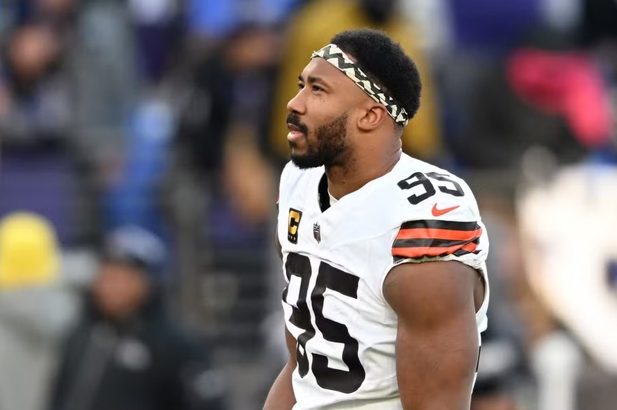 Myles Garrett e Cleveland Browns chegaram a uma renovação histórica neste domingo,com o defensor estendendo seu contrato por mais quatro temporadas,período em que receberá 160 milhões de dólares (cerca de R$ 926 milhões),uma média de 40 milhões por ano. Após ter revelado sua insatisfação com a equipe e pedido para ser negociado,ele volta atrás,decide permanecer e se torna agora o jogador mais bem pago de todos os tempos na liga,desconsiderando os quarterbacks.