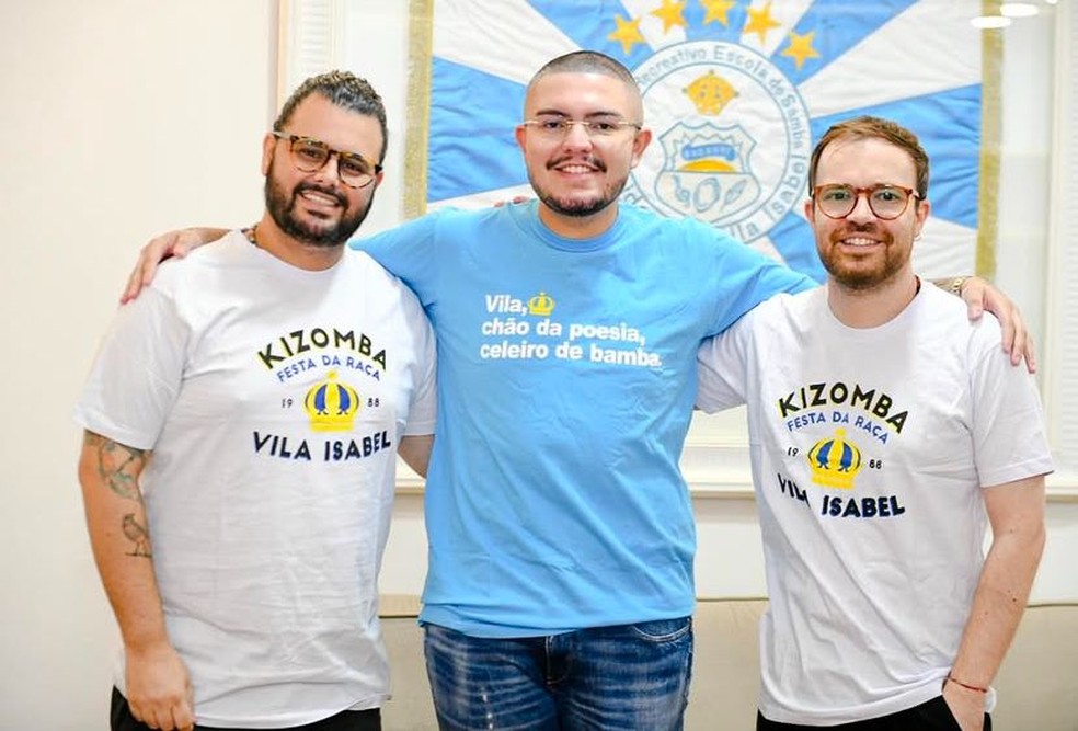 Procurado,Paulo preferiu não falar. Já Bora observa que não cabe a ele,tampouco à sua dupla,"tecer comentários em relação a outros colegas". Ao lado do presidente Luiz Guimarães,os novos contratados posaram com camisas que fazem referência ao título de 1988,primeiro da agremiação,"Kizomba,a festa da raça",justamente com essa temática: as peças foram "um presente gentilmente oferecido" pela Vila,pontua Bora. Mas,por enquanto,nada definido sobre um enredo para o ano que vem.