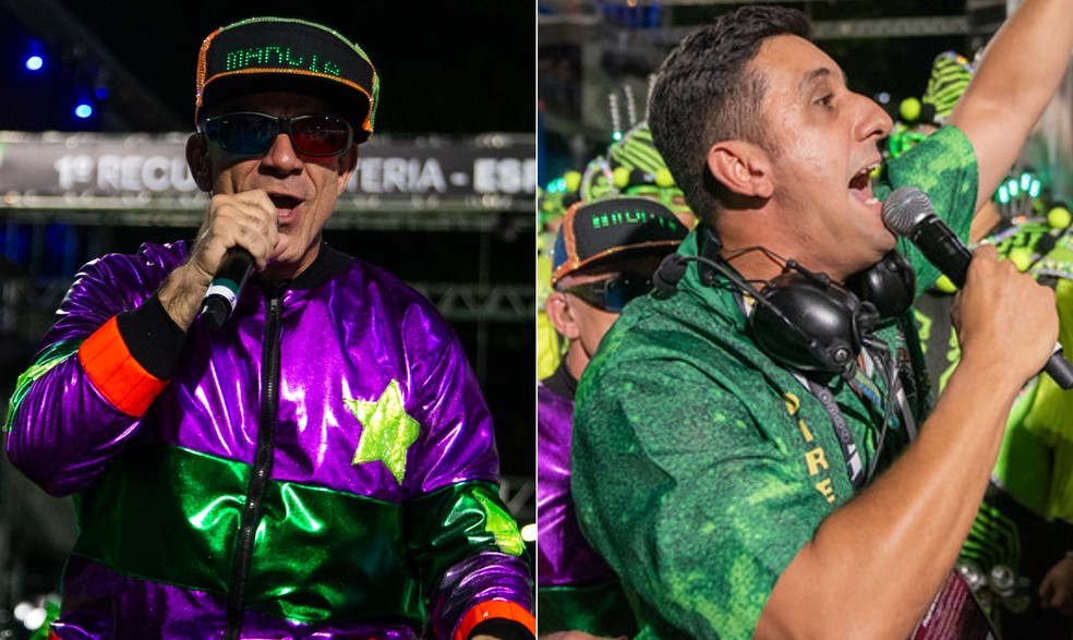 Intérprete Zé Paulo Sierra (de óculos escuros) e diretor Mauro Amorim são desligados da Mocidade — Foto: Domingos Peixoto / Agência O Globo e Eduardo Hollanda / RioCarnaval