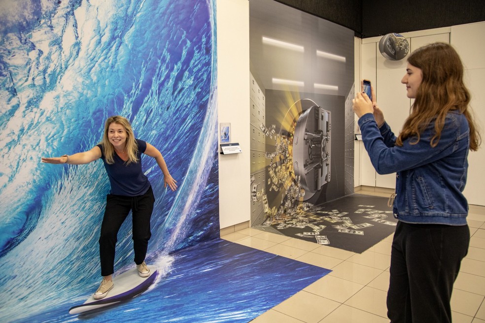 Mãe e filha posam para fotos no "Museu das Ilusões" — Foto: Ana Branco