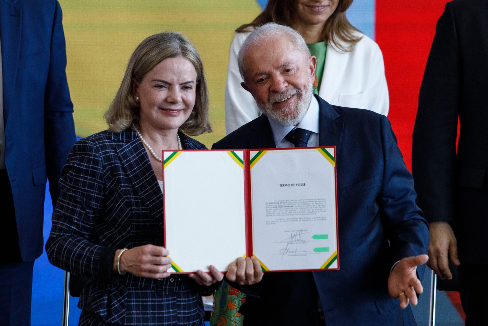No Palácio do Planalto,Lula dá posse à nova ministra da Secretaria de Relações Institucionais da Presidência da República,Gleise Hoffman — Foto: Brenno Carvalho / Agência O Globo