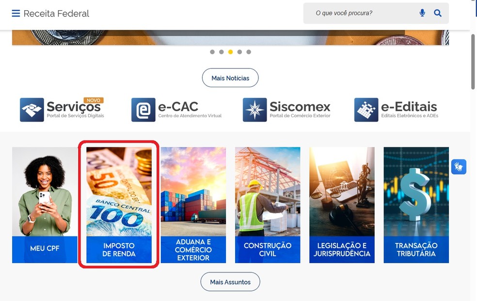 Após entrar no portal,role para baixo e clique no menu “Imposto de Renda”