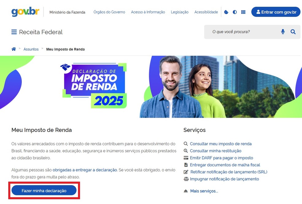Em seguida,você acessará a página “Meu Imposto de Renda”. Clique em “Fazer minha declaração”: