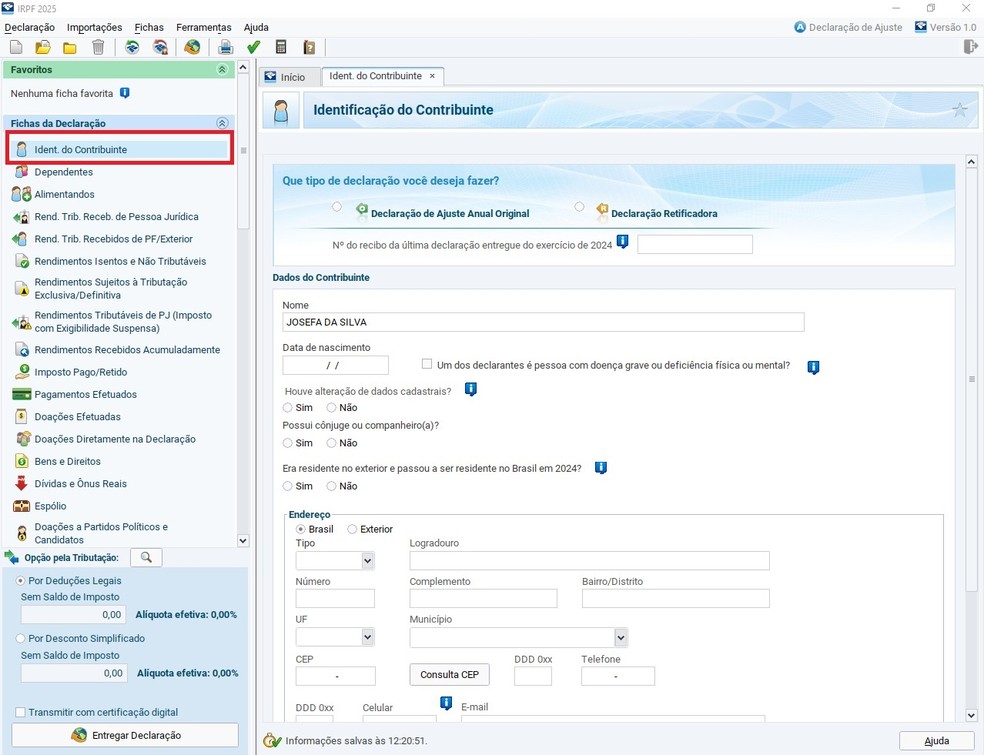 Logo acima,é necessário dizer qual o tipo de declaração você está fazendo. Opte por "Declaração de Ajuste Anual Original",caso esta seja a primeira vez que esteja preenchendo o programa do IR 2025. A opção "Declaração Retificadora" serve para você que já preencheu e enviou,mas deseja atualizar ou corrigir algum dado.