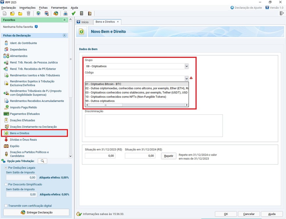 Também segue como obrigatória a especificação de criptoativos — como Bitcoin e Ethereum —,além de ser necessário informar investimentos no exterior.