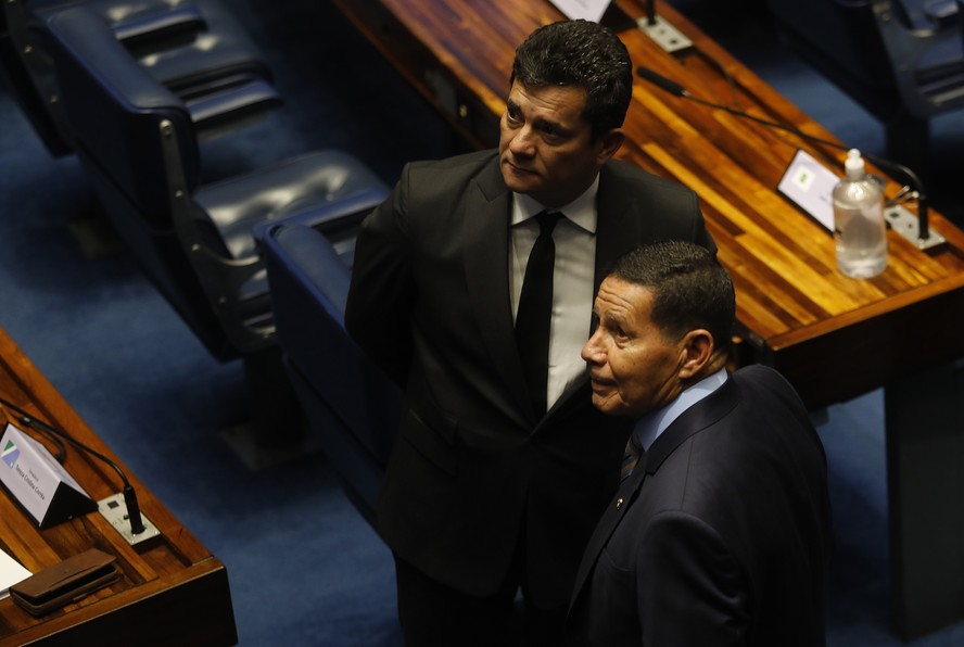 Senadores Sergio Moro e Hamilton Mourão,durante sessão — Foto: Cristiano Mariz/O Globo