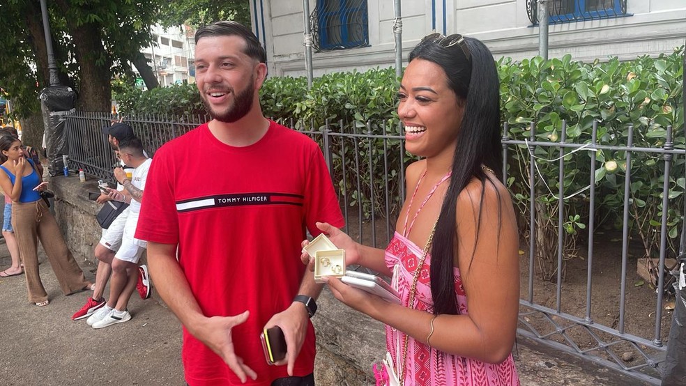 Os paulistas Gustavo Vicentin e Patricia Rocha: pedido de casamento seria no Cristo Redentor — Foto: Anna Bustamante / Agência O Globo
