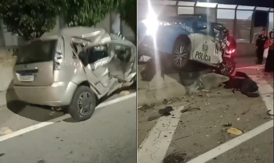 Carro perdeu o controle e atingiu viatura da PM na Linha Amarela,matando uma agente — Foto: Reprodução/X