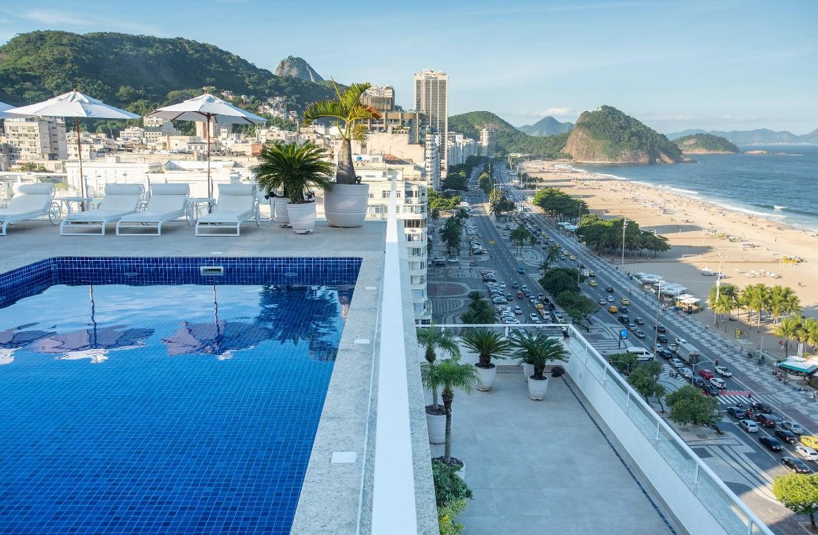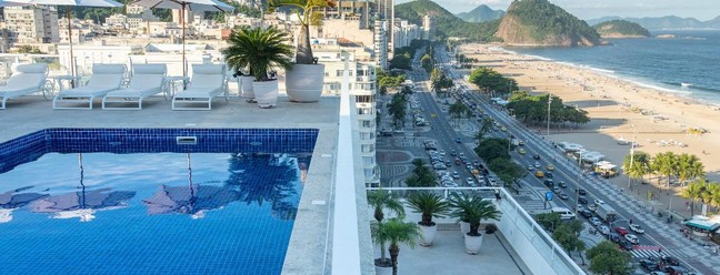 O terceiro andar tem piscina com vista para a Praia de Copacabana — Foto: Divulgação