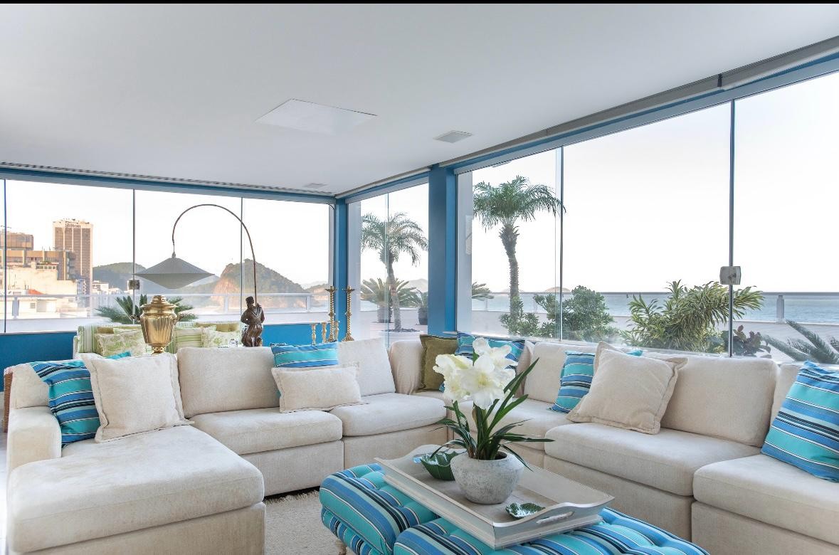 Uma das salas,envidraçadas,de frente para o mar de Copacabana — Foto: Divulgação