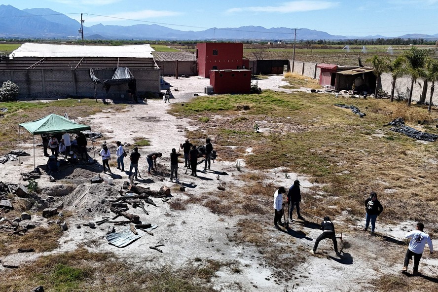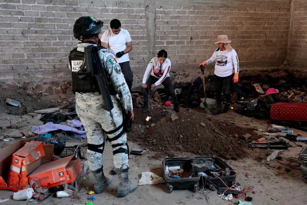 O local,descrito por ativistas como “campo de extermínio”,teria sido usado por cartéis para assassinar pessoas desaparecidas — Foto: Ulises Ruiz / AFP