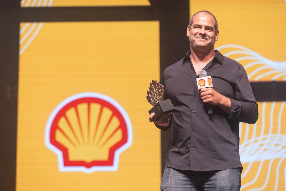 Pedro Bastos recebe o prêmio de ator para o pai,Othon — Foto: Divulgação Shell/Alessandro Costa