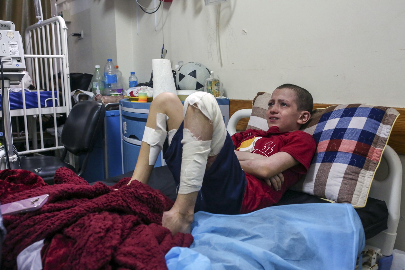 Mohamed Abu Rteinah,12 anos,que foi queimado quando uma bomba atingiu sua casa no final de outubro de 2023,se recupera em Gaza em novembro. — Foto: Samar Abu Elouf/The New York Times