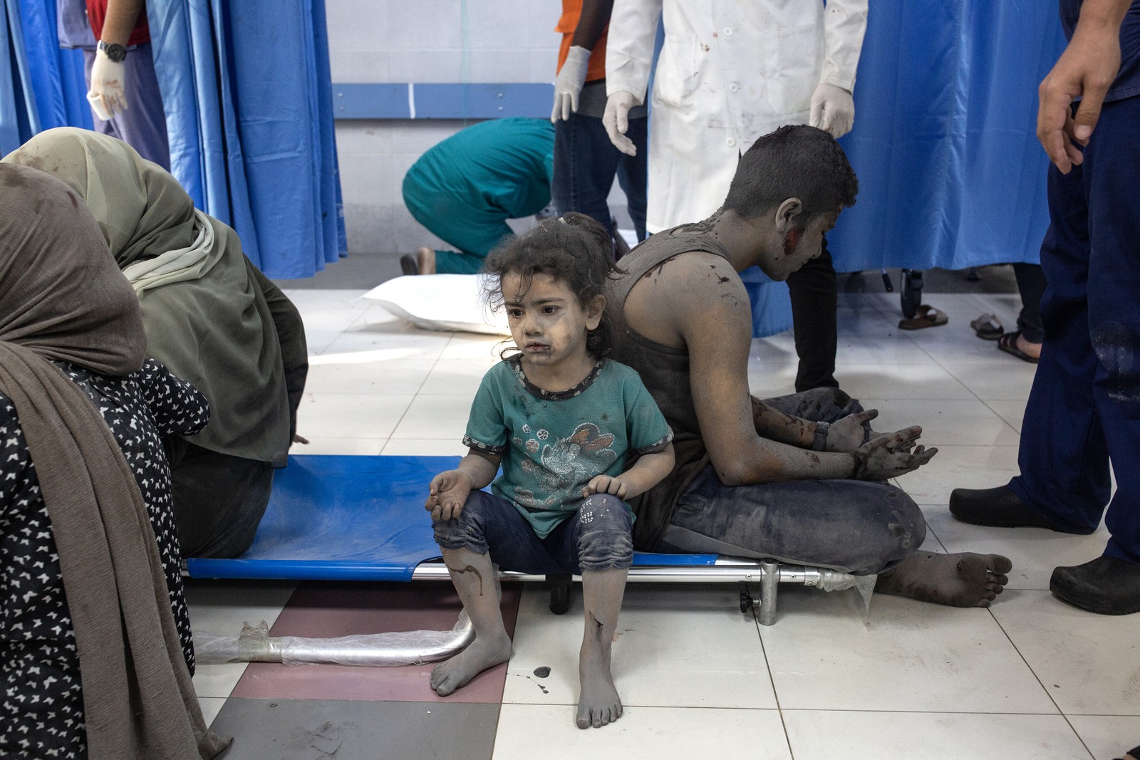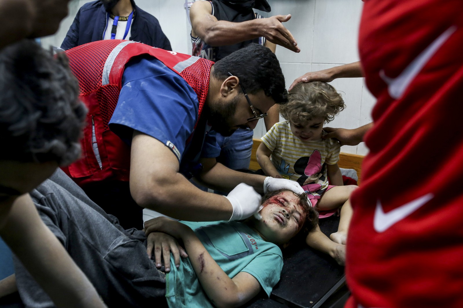 Crianças feridas no Hospital Al-Shifa,na cidade de Gaza,após ataques aéreos israelenses. — Foto: Samar Abu Elouf/The New York Times
