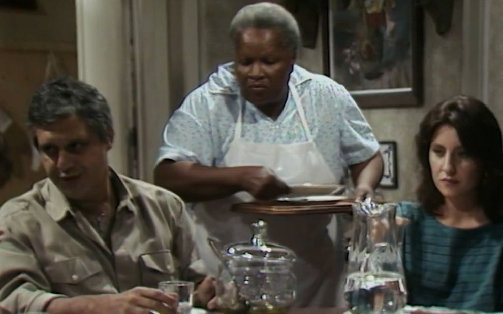 Maria José (Zeni Pereira),a empregada de Bartolomeu na versão original de 'Vale tudo',não existirá no remake — Foto: Reprodução/TV Globo