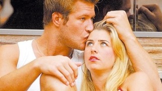 Assim que Aline entrou na casa do 'BBB' 15,Fernando demonstrou interesse por ela. Ele terminou o relacionamento com Amanda e ficou com a loira,o que gerou muitas brigas no programa. Os dois estão juntos até hoje e são pais de um menino — Foto: Reprodução/Globo